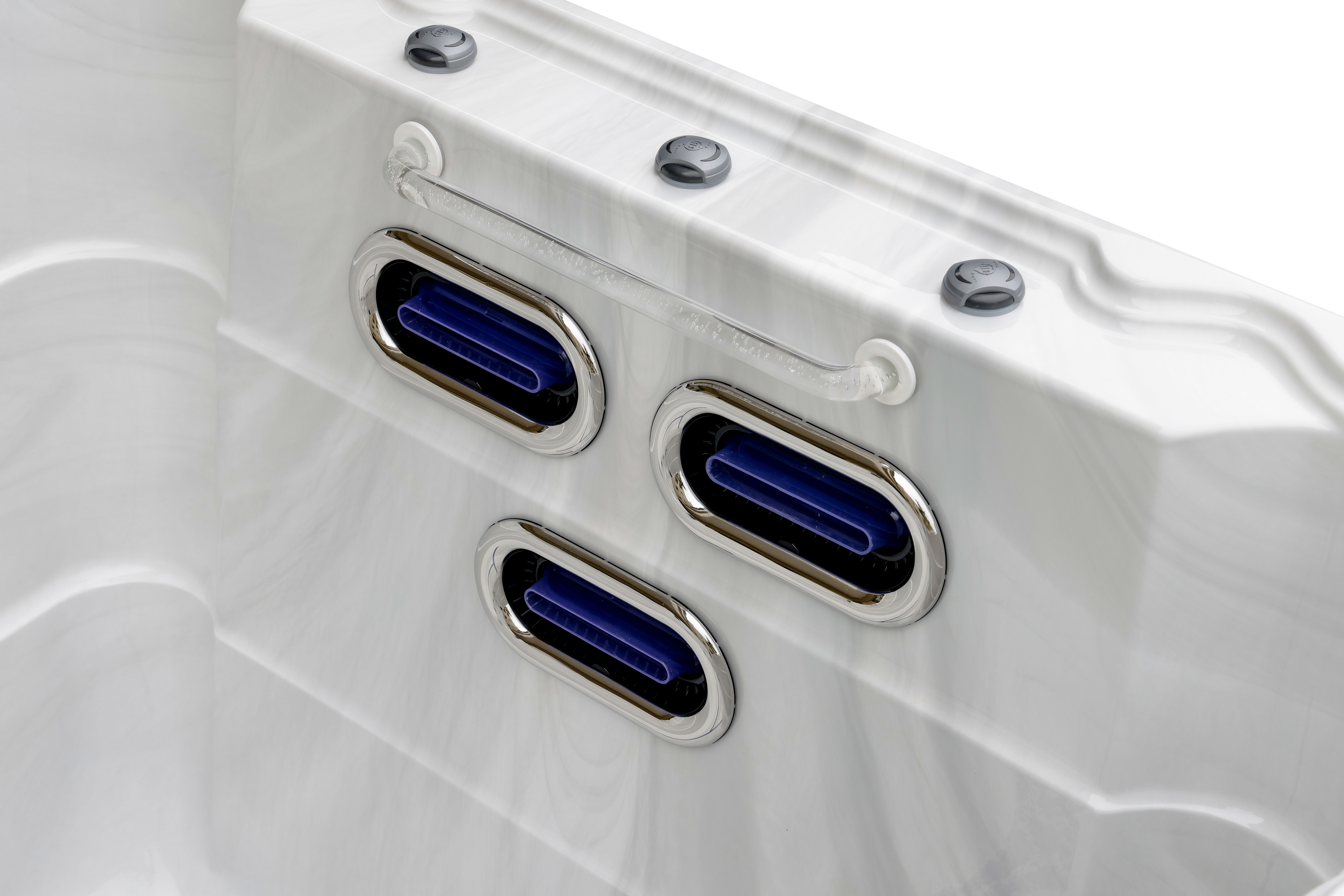 Чаша спа-бассейна изготовлена из инновационного материала Lucite® Sterling Silver — эталонного материала премиум-класса американского производства. Технология гарантирует:
